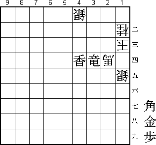 Courtesy of Tsumeshogi Paradise. Note: Continuation of Problem 94. Mate in 21. Hint: If you find yourself going in circles, take a step back. |