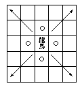 The hiju may move any number of squares orthogonally sideways or forwards (n, s, e or w), or diagonally backwards (s-e or s-w), or diagonally forward (n-w or n-e) to a(1) square or a (2) square with a jump. The hiju is a promoted Dragon King.
