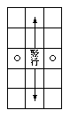 The fuhyo may move one square forward (ie: n). Initially, each side has 15 fuhyo. Blacks fuhyo are located at k1-15, white's at e1-15. The fuhyo promotes to gold general.
