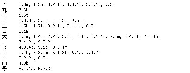 entry can be found in the top of this subsection. Correspondingly, "m"